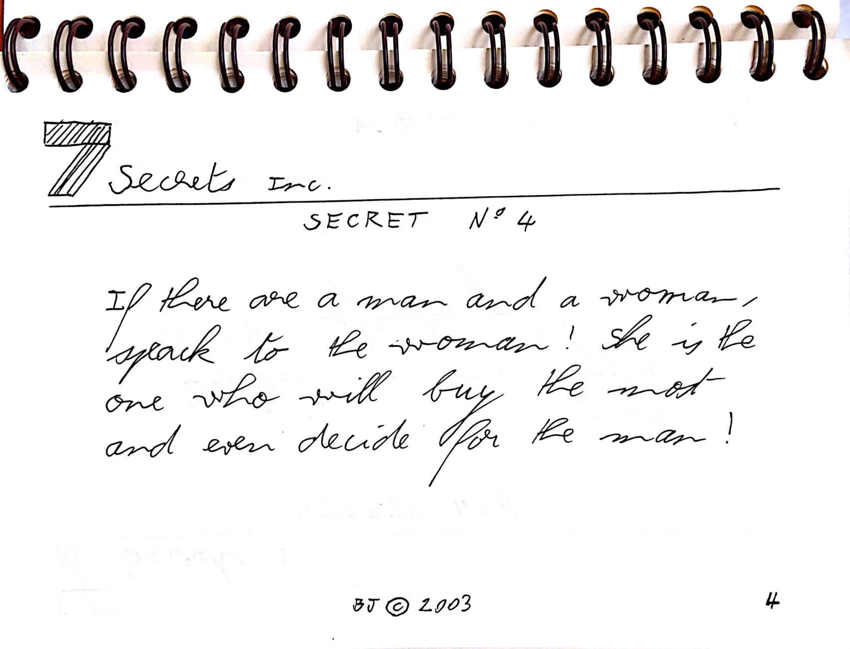 Ni une, ni deux, je m’assoie en tailleur dans un coin de son échoppe et commence à rédiger une présentation du type Power Point, sur mon carnet de voyages, en empruntant un style et un ton résolument américain.